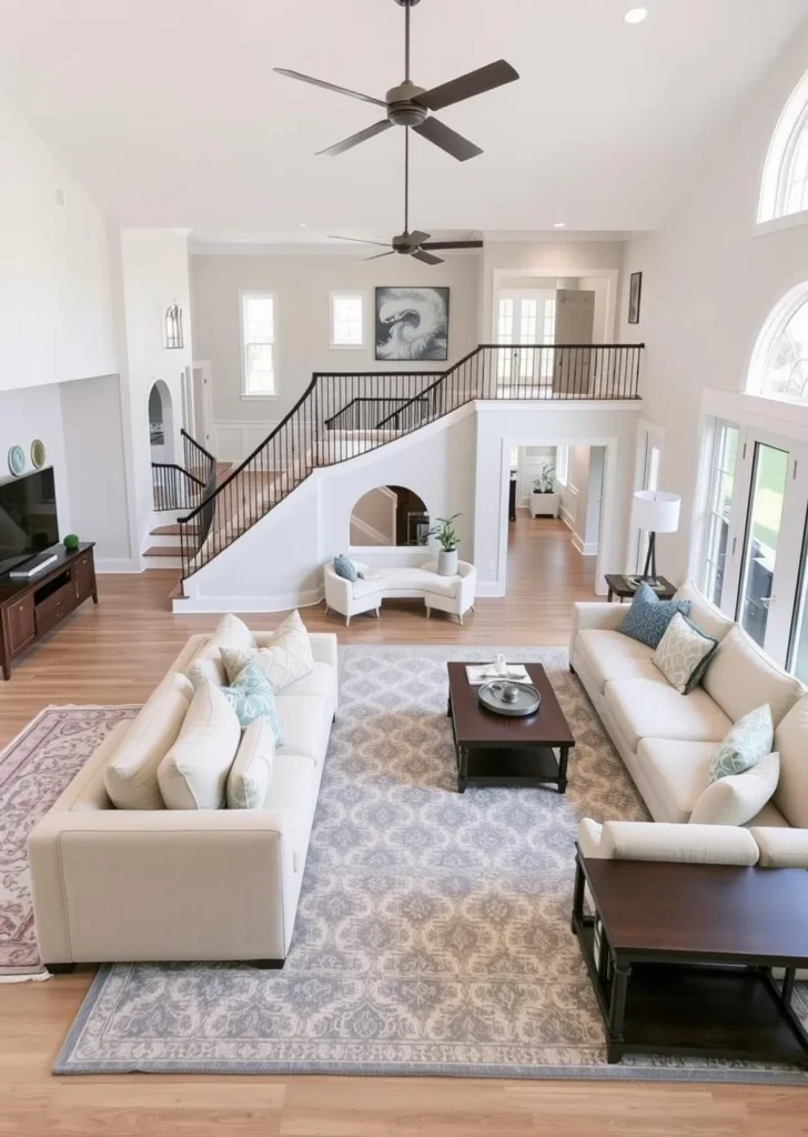 If you love the beach, a coastal-inspired open floor plan is perfect for you. Light and airy colors, such as blues, greens, and whites, evoke the feeling of the ocean. Natural materials, such as rattan, bamboo, and driftwood, add a touch of coastal charm. Large windows and sliding glass doors provide stunning ocean views. Relaxed furniture and nautical accents complete the look.