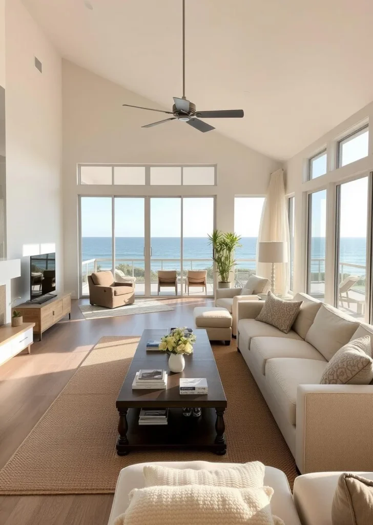Maximize natural light by incorporating large windows and sliding glass doors. Use light-colored paint and décor to reflect light throughout the space.
