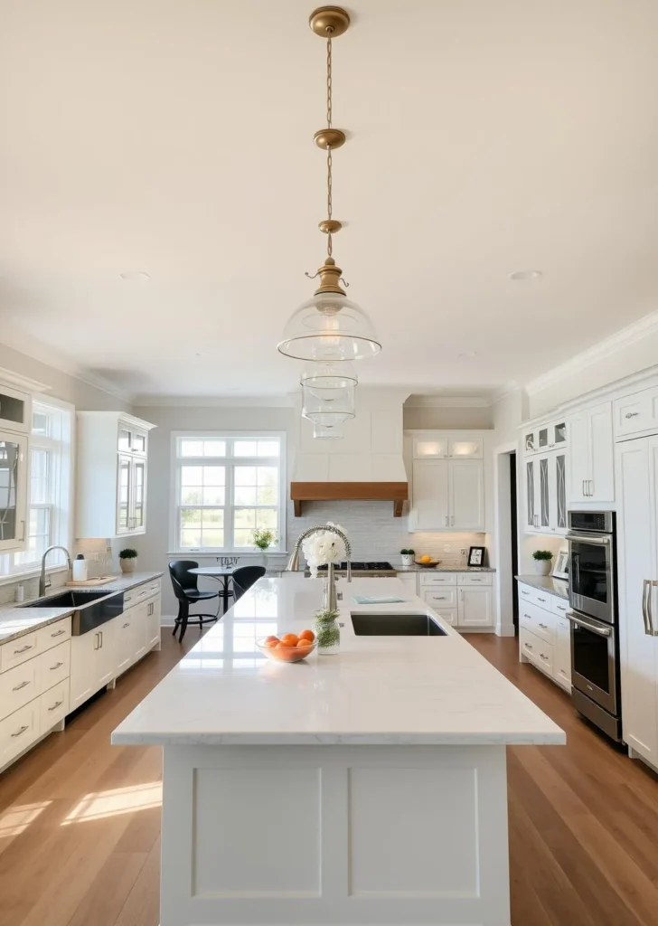 Transitional designs blend elements of traditional and contemporary styles, creating a balanced and timeless look. Neutral color palettes, comfortable furniture, and a mix of textures add to the overall appeal. The open floor plan is typically divided into distinct zones with subtle changes in flooring or furniture placement.