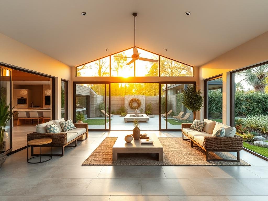 Maximize natural light by incorporating large windows and sliding glass doors. Use light-colored paint and décor to reflect light throughout the space.