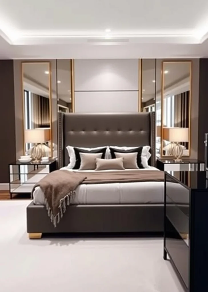 • Utilize vertical space: Tall headboards, shelving units, and artwork can draw the eye upwards, making the room feel larger.