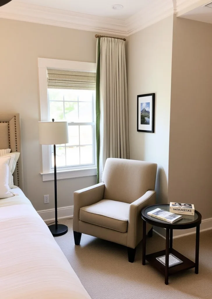 • Consider a seating area: If space allows, a cozy armchair or bench can create a relaxing corner.