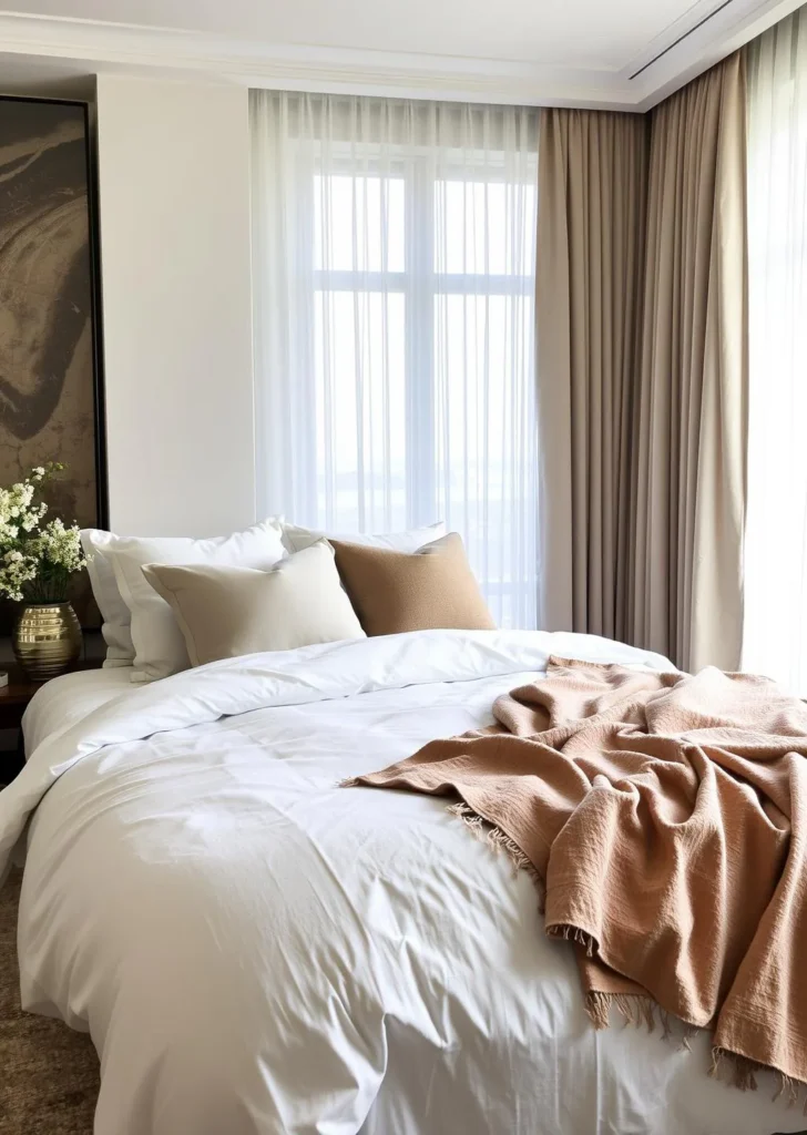 - Bedding: Opt for high-thread-count linens in solid colors or subtle textures.
