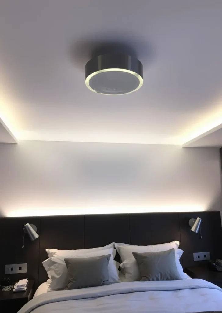 - Ambient: Floor lamps or LED strip lights behind the headboard.