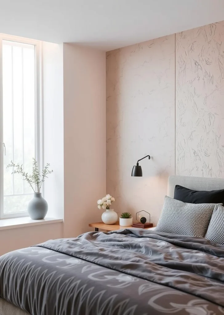 An accent wall in textured plaster or a subtle patterned wallpaper can elevate your modren bedroom without overwhelming it.